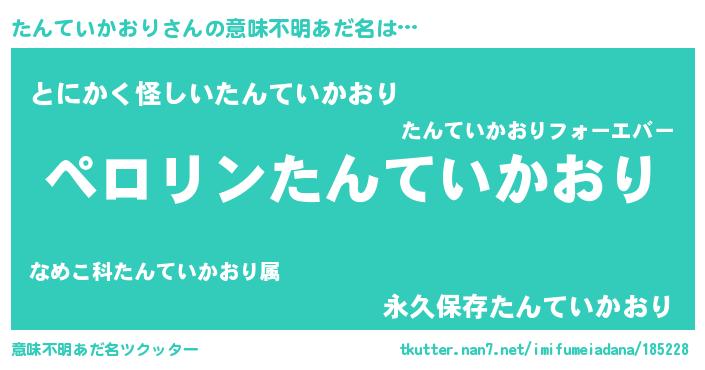 | ポケモン風あだ名 | 『タンチュウ』『ヒタンテイカオリ』 |