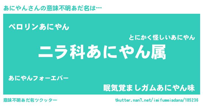 | ヒーロー風カッコイイあだ名 | 『スーパーアニヤン』『愛の使者あにやん』 |