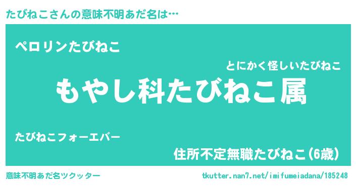 | 胡散臭い通販商品みたいなあだ名 | 『モテモテ間違いなし霊験あらたかなお札…その名も「たびねこ」』 |