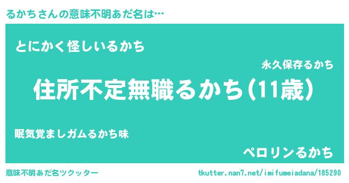 | 男性向けラノベタイトル風あだ名 | 『この素晴らしい世界にるかちを!』 |