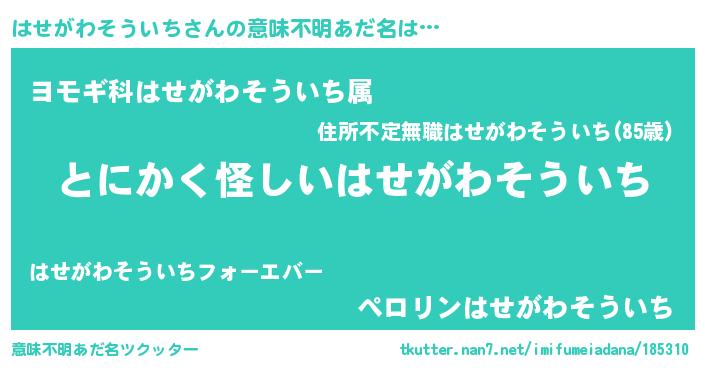 | 男性向けラノベタイトル風あだ名 | 『はせがわそういちに滅ぼされるだけの簡単なお仕事です』 |