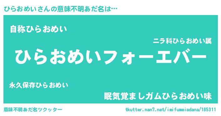 | 男性向けラノベタイトル風あだ名 | 『はたらくひらおめいさま!』 |