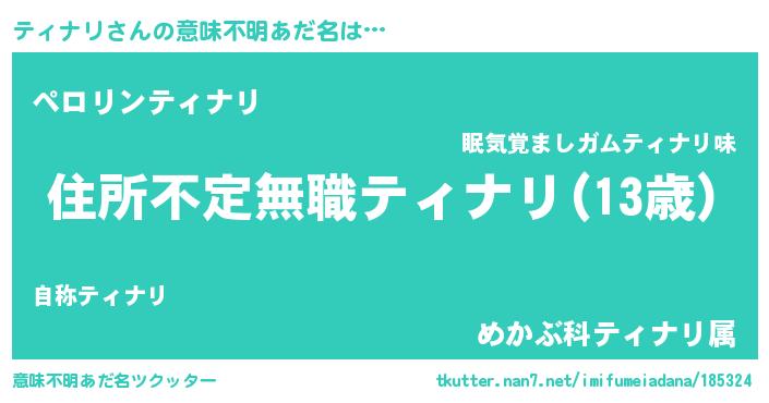 | 男性向けラノベタイトル風あだ名 | 『この素晴らしい世界にティナリを!』 |