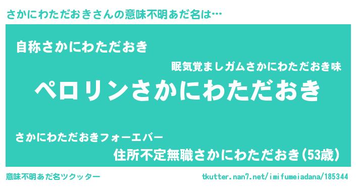 | 男性向けラノベタイトル風あだ名 | 『サカニワタダオキアートオンライン』 |