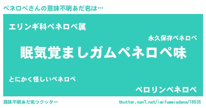 | 欧米人風あだ名 | 『ペネロペ・ステッグマイヤー』 |