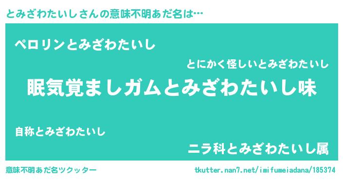 | 男性向けラノベタイトル風あだ名 | 『とみざわたいしに滅ぼされるだけの簡単なお仕事です』 |