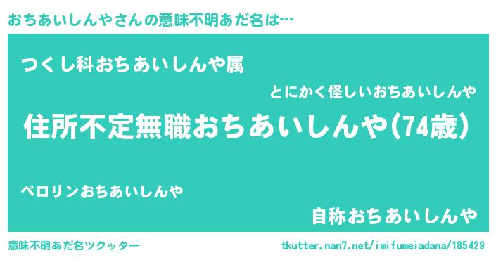 | 胡散臭い通販商品みたいなあだ名 | 『世界中を虜にした世界で10本だけ現存している希少なブランデー…その名も「おちあいしんや」』 |