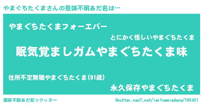 | 欧米人風あだ名 | 『アンジェラ・やまぐちたくま』 |