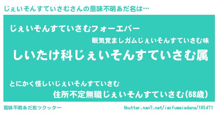 | 料理風あだ名 | 『じぇいそんすていさむごはん』 |