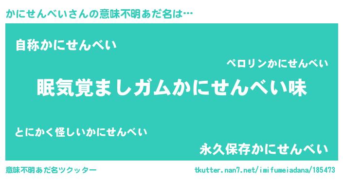 | 男性向けラノベタイトル風あだ名 | 『ノーゲーム・ノーカニセンベイ』 |