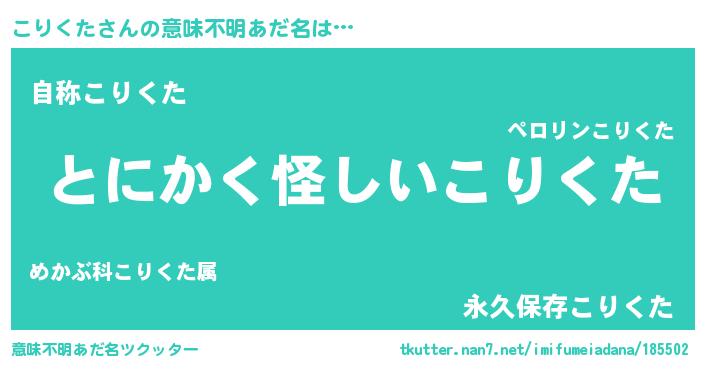 | 欧米人風あだ名 | 『ウサインこりくた』 |