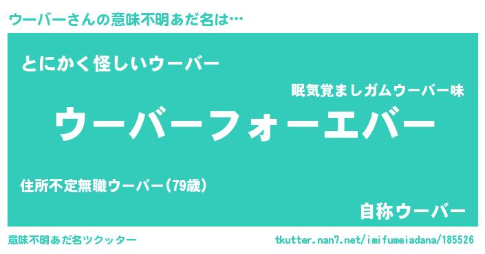 | 女子向けラノベタイトル風あだ名 | 『ウーバーの雑貨屋さん』『闇のウーバー』 |