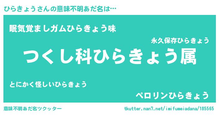 | 男性向けラノベタイトル風あだ名 | 『ひらきょう~年齢イコール彼女いない歴の魔法使い~』 |