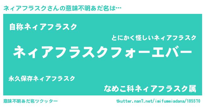 | 女子向けラノベタイトル風あだ名 | 『ネィアフラスクの雑貨屋さん』 |