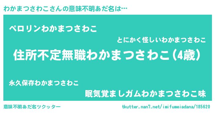 | 男性向けラノベタイトル風あだ名 | 『この素晴らしい世界にわかまつさわこを!』 |