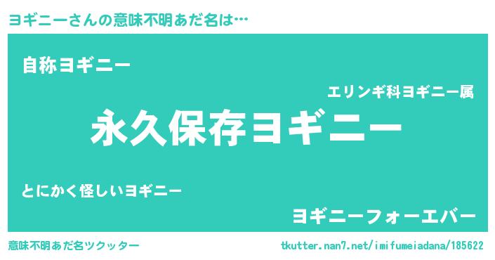 | 男性向けラノベタイトル風あだ名 | 『ヨギニーという概念が存在しない退屈な世界 』 |