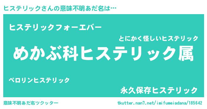 | 男性向けラノベタイトル風あだ名 | 『ヒステリックスレイヤー』 |