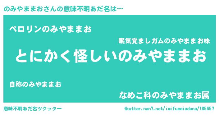| 女子向けラノベタイトル風あだ名 | 『のみやままおは平凡を望む』 |