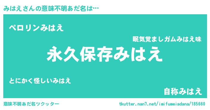 | ヘコむあだ名 | 『みはえ(小並感)』『みはもー』 |