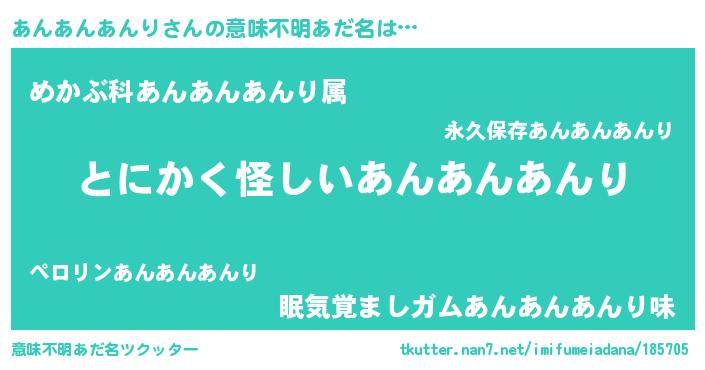 | 胡散臭い通販商品みたいなあだ名 | 『伝統あるサプリメント…その名も「あんあんあんり」』 |