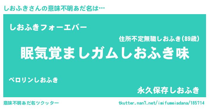 | ヒーロー風カッコイイあだ名 | 『正義の使者しおふき』『ネオシオフキ』 |