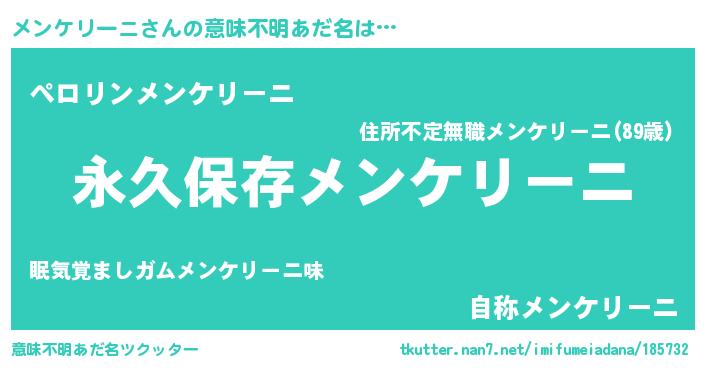 | 男性向けラノベタイトル風あだ名 | 『メンケリーニという概念が存在しない退屈な世界 』 |