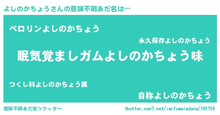 | 欧米人風あだ名 | 『ダニエルよしのかちょう』 |