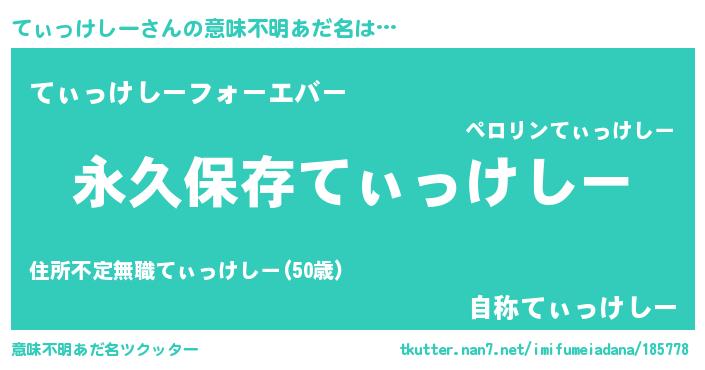 | 男性向けラノベタイトル風あだ名 | 『てぃっけしーという概念が存在しない退屈な世界 』 |