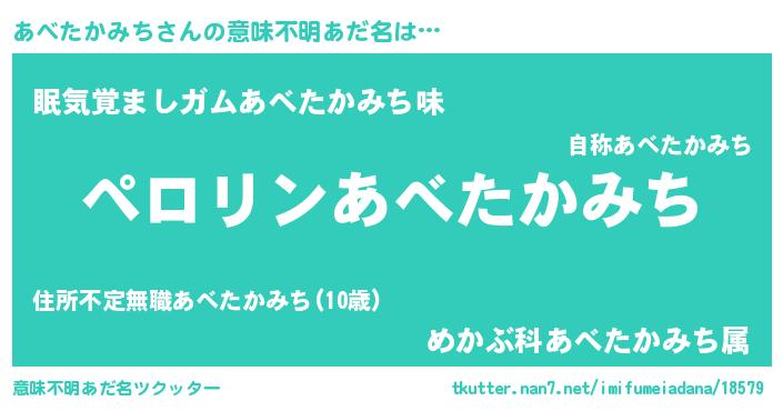 | 胡散臭い通販商品みたいなあだ名 | 『必ず成功するブレスレット…その名も「あべたかみち」』 |