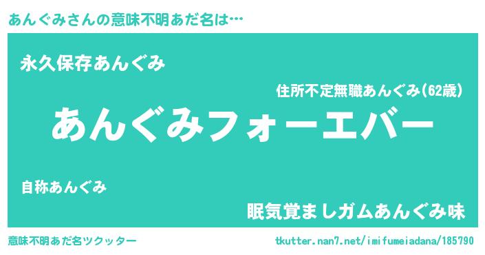 | 女子向けラノベタイトル風あだ名 | 『あんぐみの婚約者』『闇のあんぐみ』 |