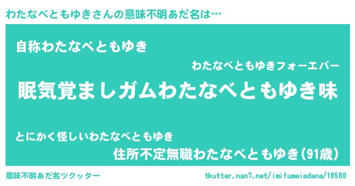 | 男性向けラノベタイトル風あだ名 | 『ノーゲーム・ノーワタナベトモユキ』 |
