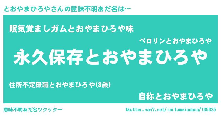 | 胡散臭い通販商品みたいなあだ名 | 『来世でも幸せになれる水素水…その名も「とおやまひろや」』 |