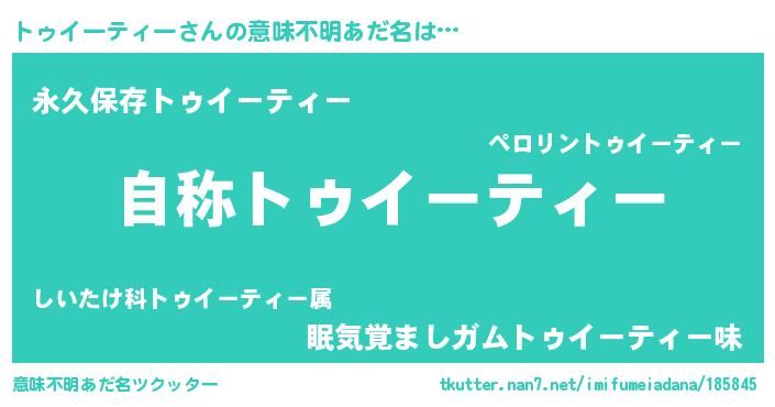 | ヘコむあだ名 | 『トゥイーティー(小並感)』『トゥにー』 |