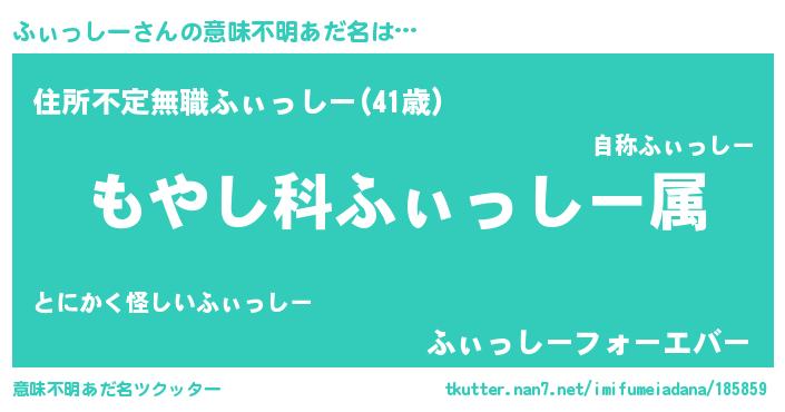 | ヘコむあだ名 | 『なまこ酢』『ふぃ太郎』『ふぃにー』 |