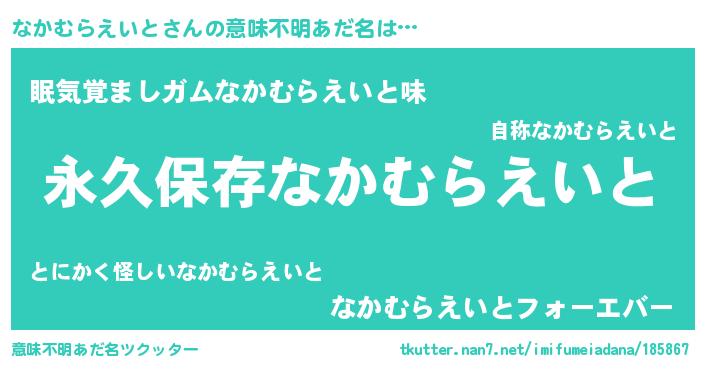 | ヘコむあだ名 | 『なかむらえいと(小並感)』『なまこ酢』 |