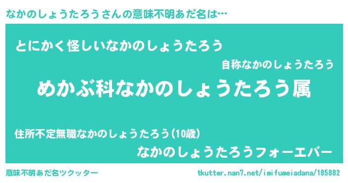 | 男性向けラノベタイトル風あだ名 | 『ナカノショウタロウスレイヤー』 |