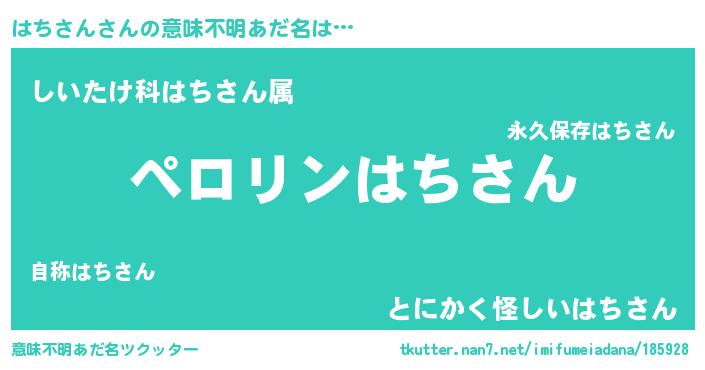 | 欧米人風あだ名 | 『はちさん・ステッグマイヤー』 |