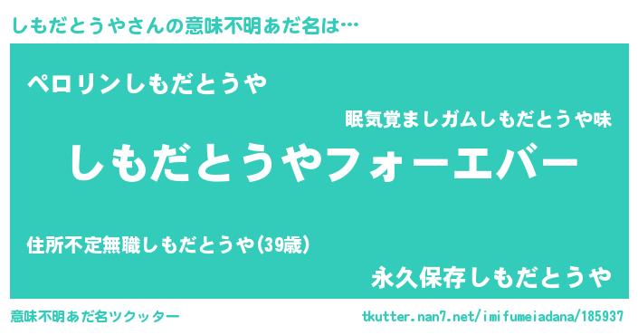 | 男性向けラノベタイトル風あだ名 | 『緋弾のシモダトウヤ』 |