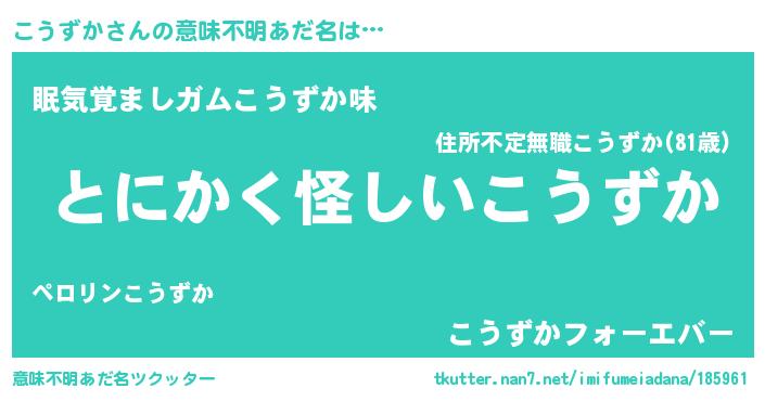 | 男性向けラノベタイトル風あだ名 | 『こうずかの嫁は女の子じゃないと思った?』 |