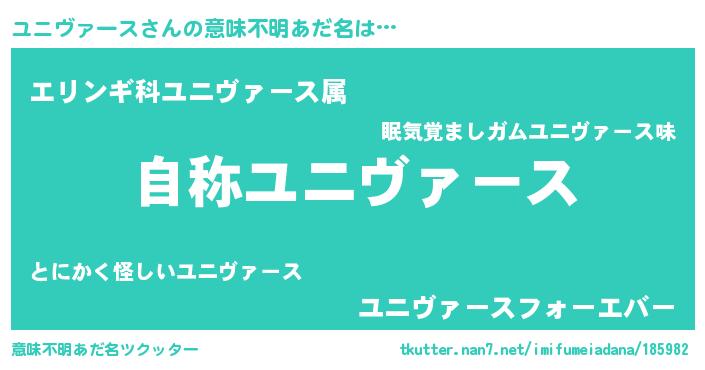 | 男性向けラノベタイトル風あだ名 | 『Re:ユニヴァースから始める異世界生活』 |