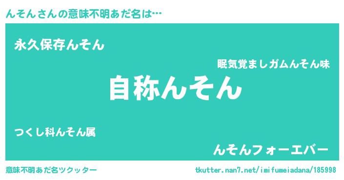 | ヘコむあだ名 | 『んそん(苦笑)』『豆乳』『んそもー』 |