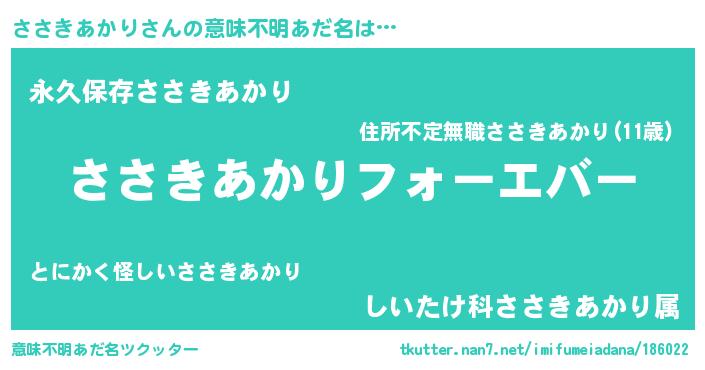 | 男性向けラノベタイトル風あだ名 | 『やはりささきあかりの青春ラブコメはまちがっている 』 |