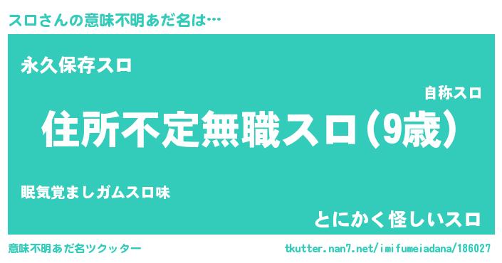 | ヘコむあだ名 | 『スロ(笑)』『スロを』『酢こんぶ』 |