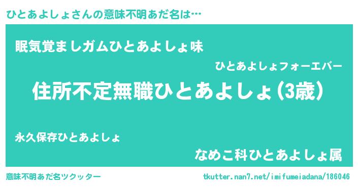 | 男性向けラノベタイトル風あだ名 | 『この素晴らしい世界にひとあよしょを!』 |