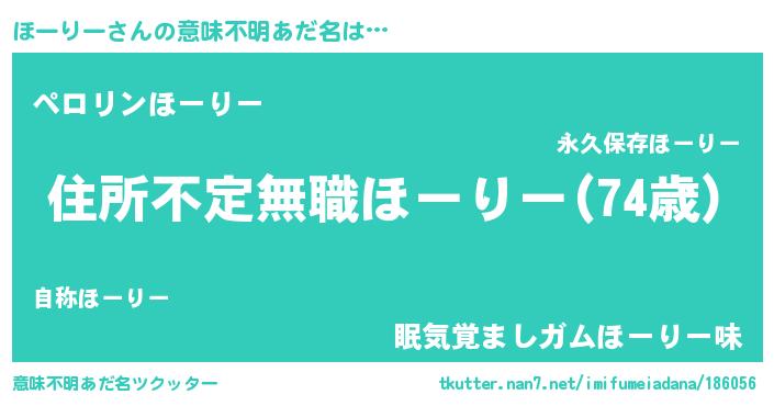 | 胡散臭い通販商品みたいなあだ名 | 『あなたにだけ特別に提供する世界で10本だけ現存している希少なブランデー…その名も「ほーりー」』 |