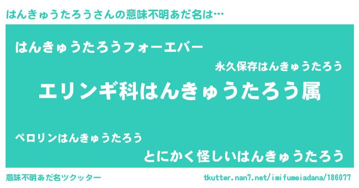 | 肩書あだ名 | 『はんきゅうたろう大将』 |