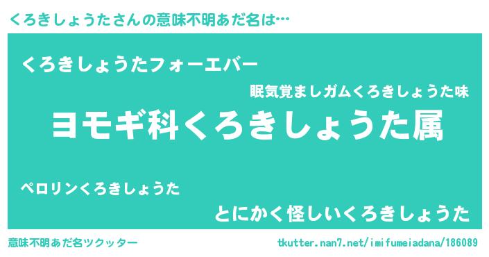 | 男性向けラノベタイトル風あだ名 | 『くろきしょうた~年齢イコール彼女いない歴の魔法使い~』 |