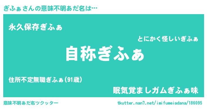 | 欧米人風あだ名 | 『ケンブリッジぎふぁ』『ダニエルぎふぁ』 |