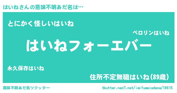 | 欧米人風あだ名 | 『はいねクリステル』『ウサインはいね』 |