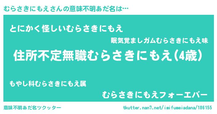 | 男性向けラノベタイトル風あだ名 | 『緋弾のムラサキニモエ』 |